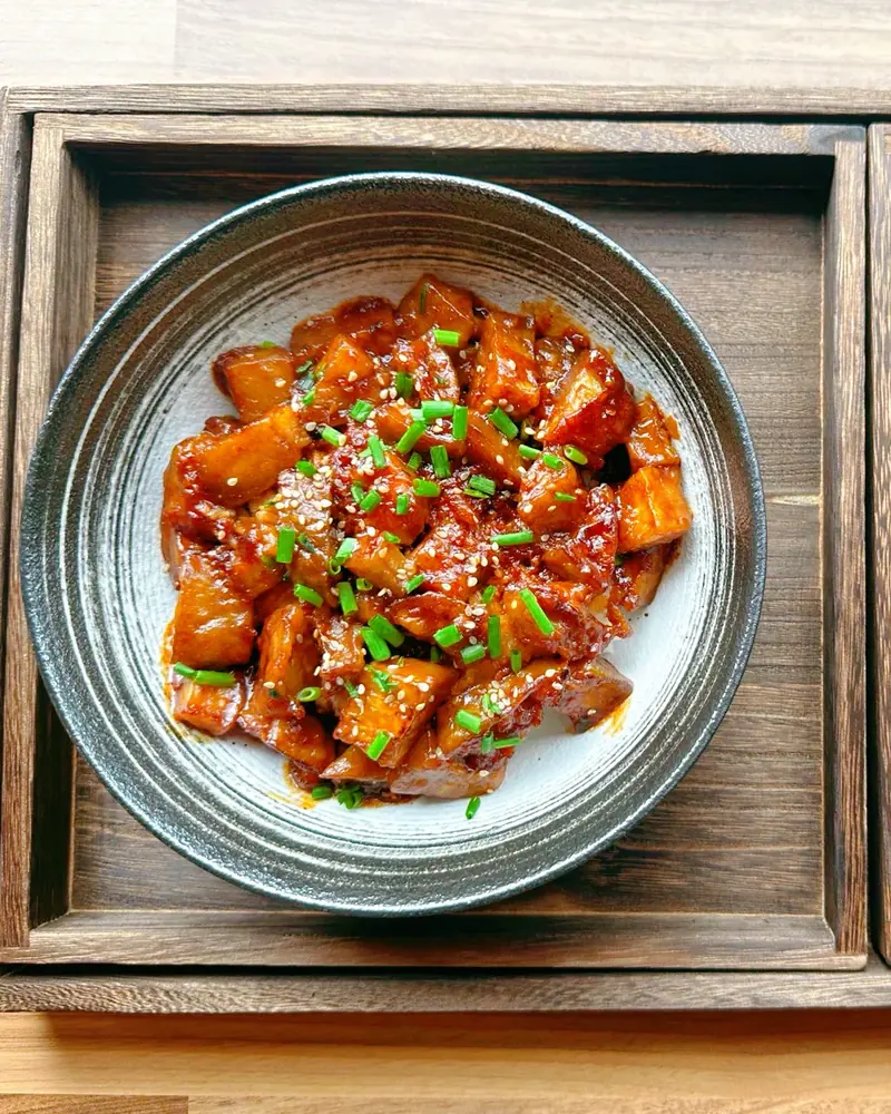 Mapo Tofu 20 .-Découvrez le frisson du poivre du Sichuan ! Un plat de caractère où le tofu fond en bouche, relevé par un sauté d'ail et de gingembre. Personnalisez votre plaisir : version végétarienne ou au porc haché.